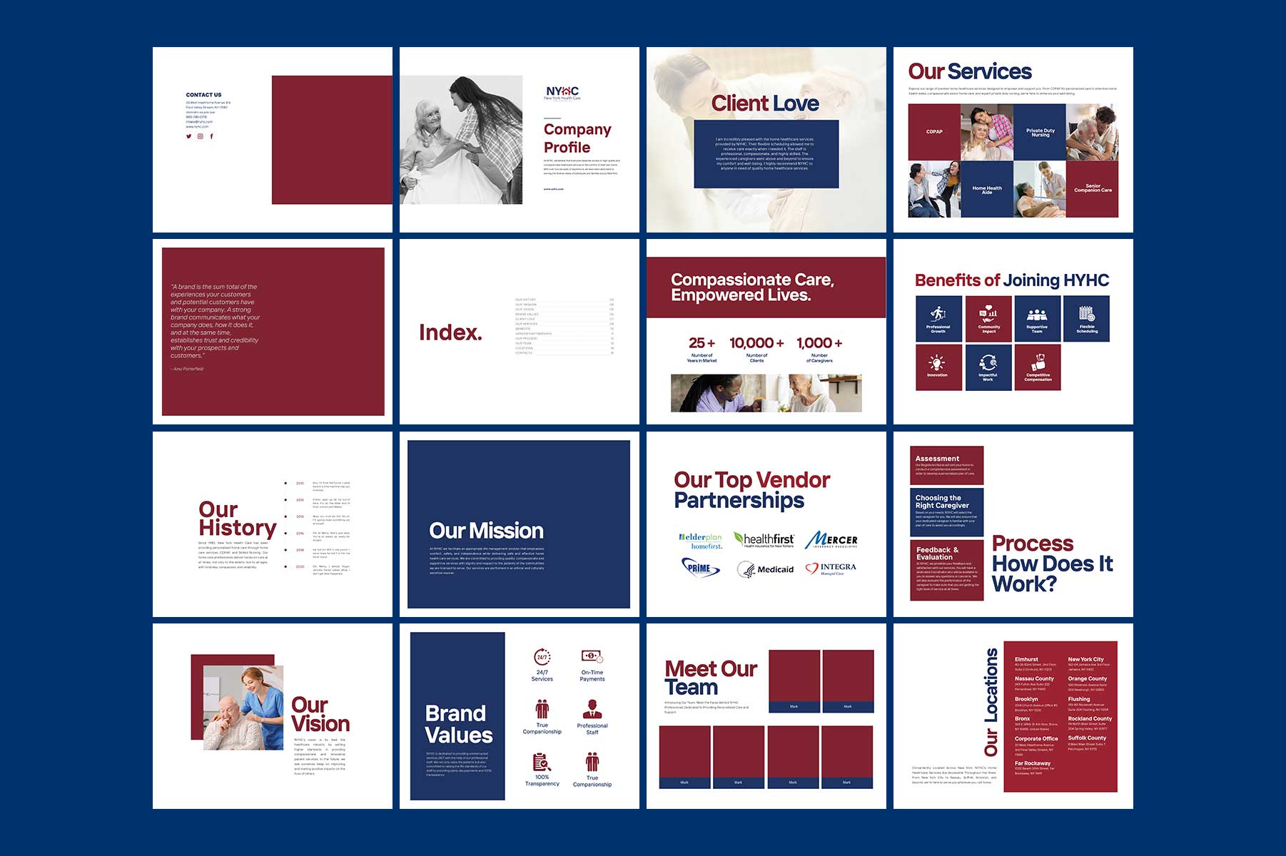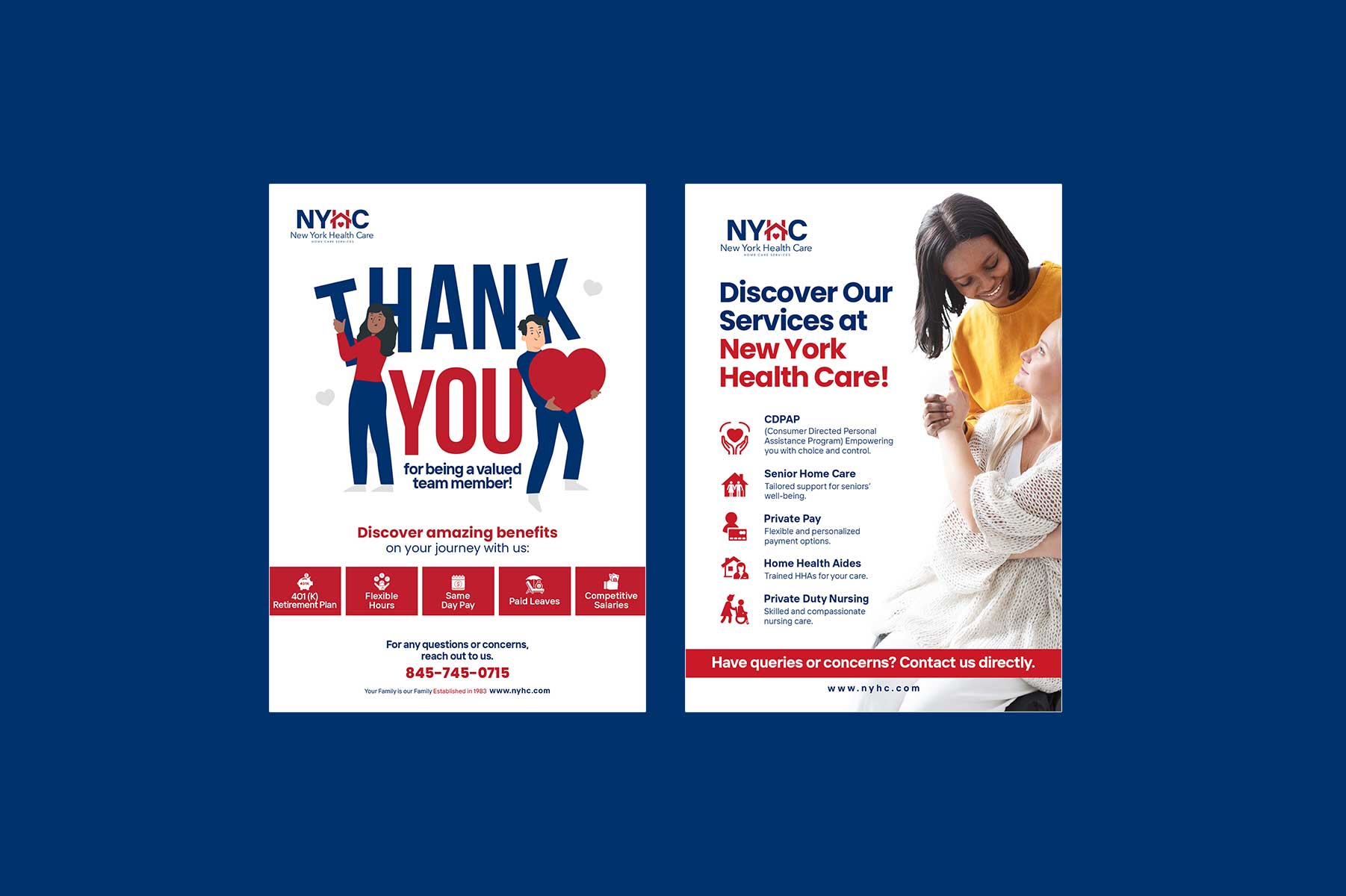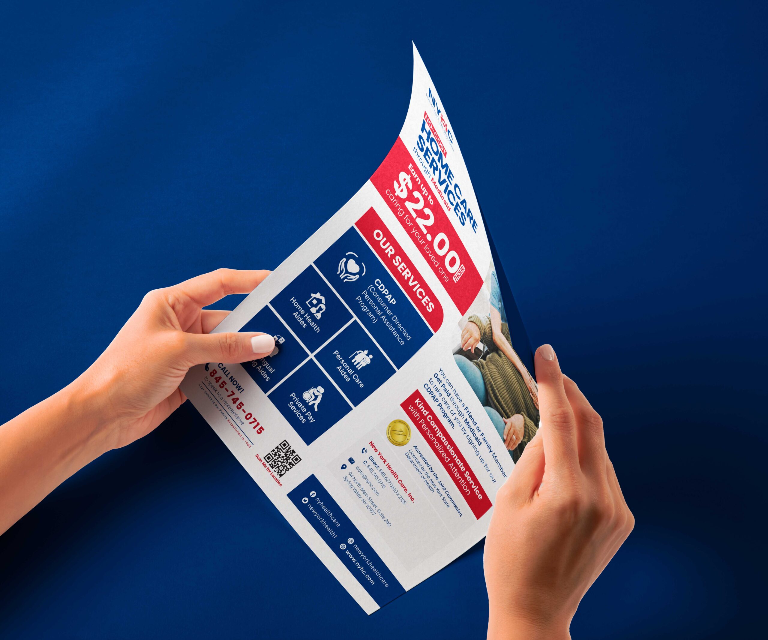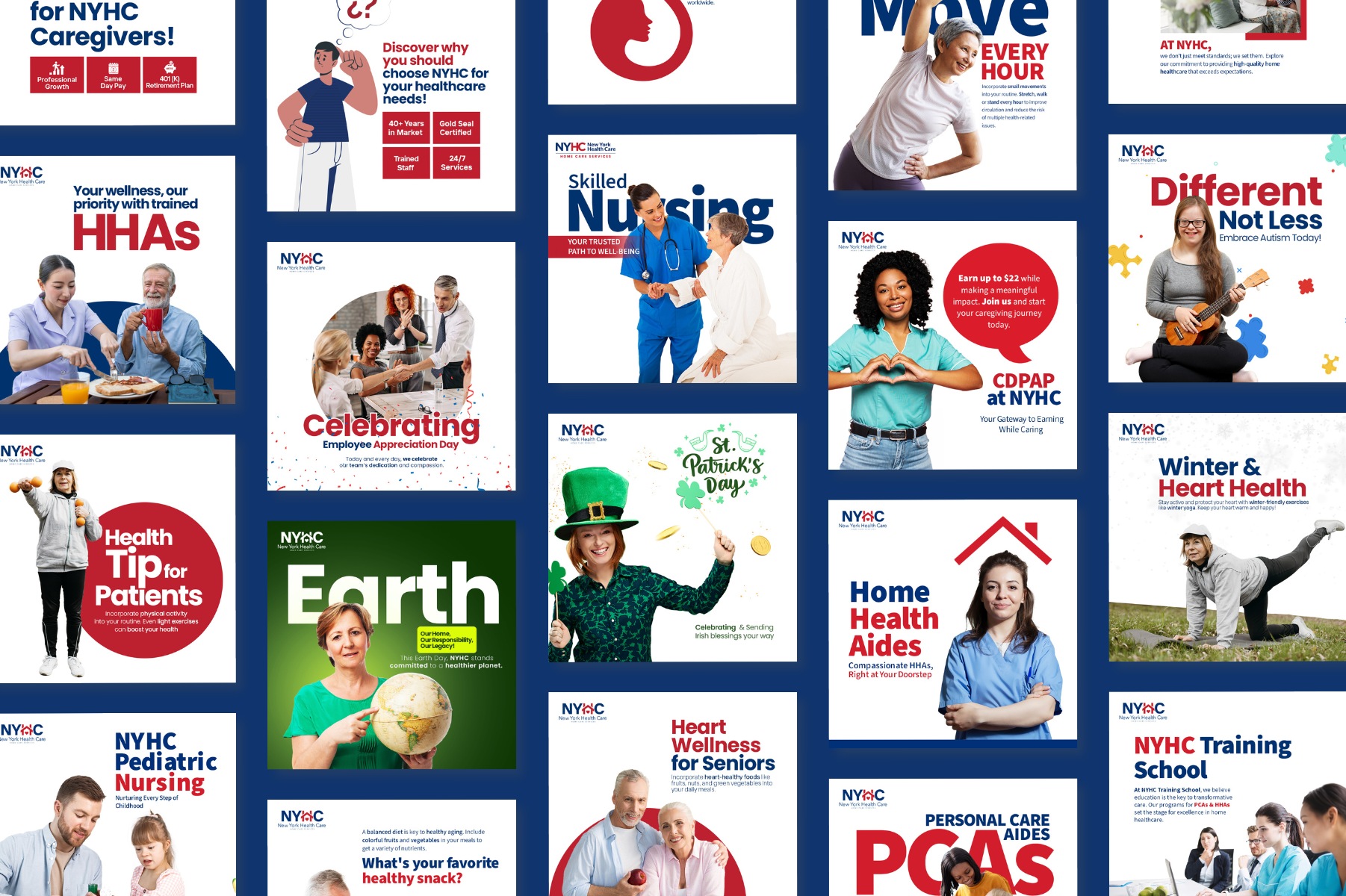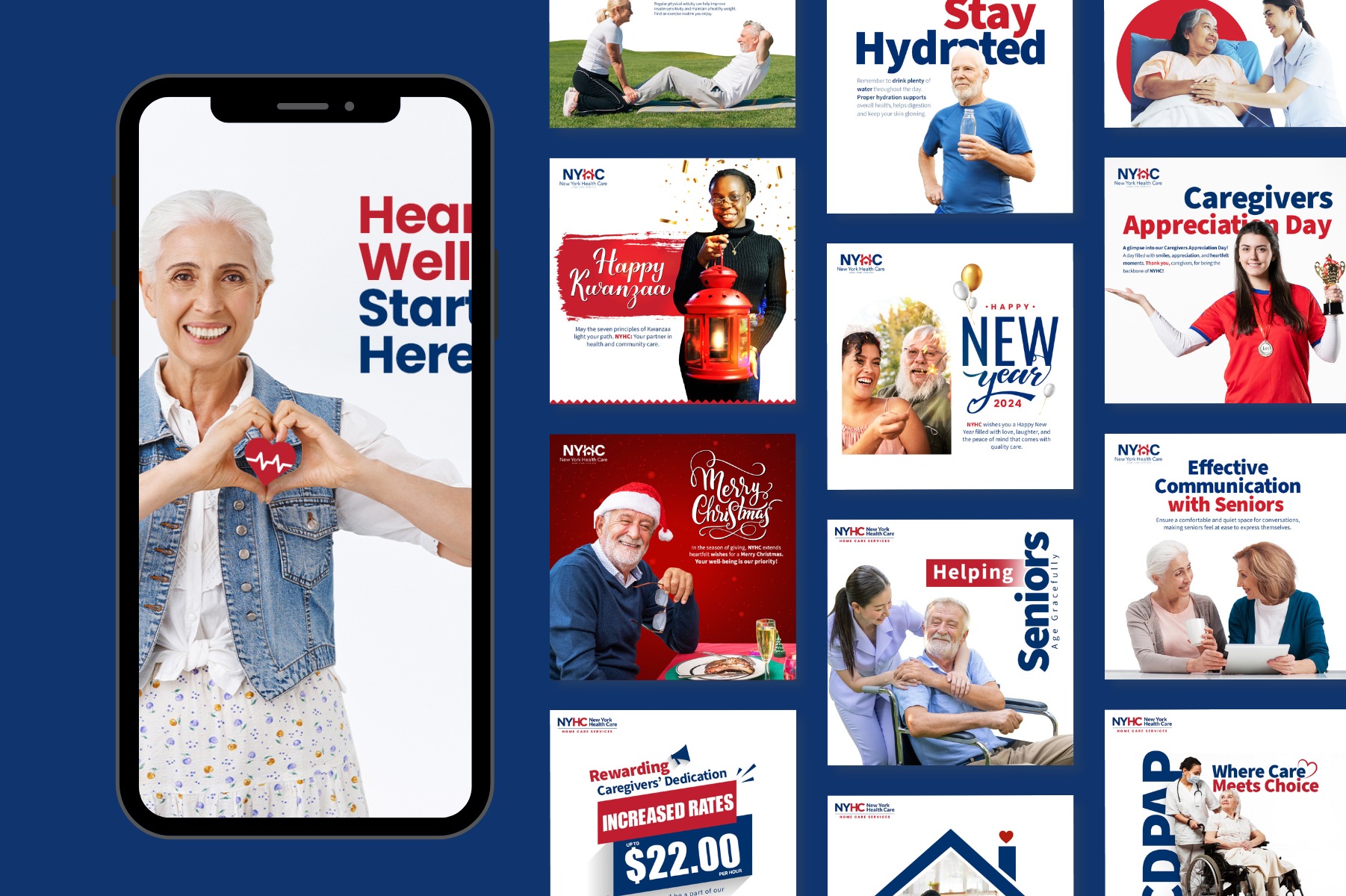 NoonFay reimagined how NYHC conveyed its message of in-home care. We delved into NYHC’s home healthcare services’ target audience,  considering the needs of patients and their families, and the evolving healthcare landscape, pinpointing opportunities to strengthen their brand voice. We rebranded New York Health Care- Home Care Service and designed a completely new brand identity for them, spanning from business cards and stationary design to banner templates, bill board designs, brochures, flyers and social media. We also provided a strategy that improved their outreach dramatically.