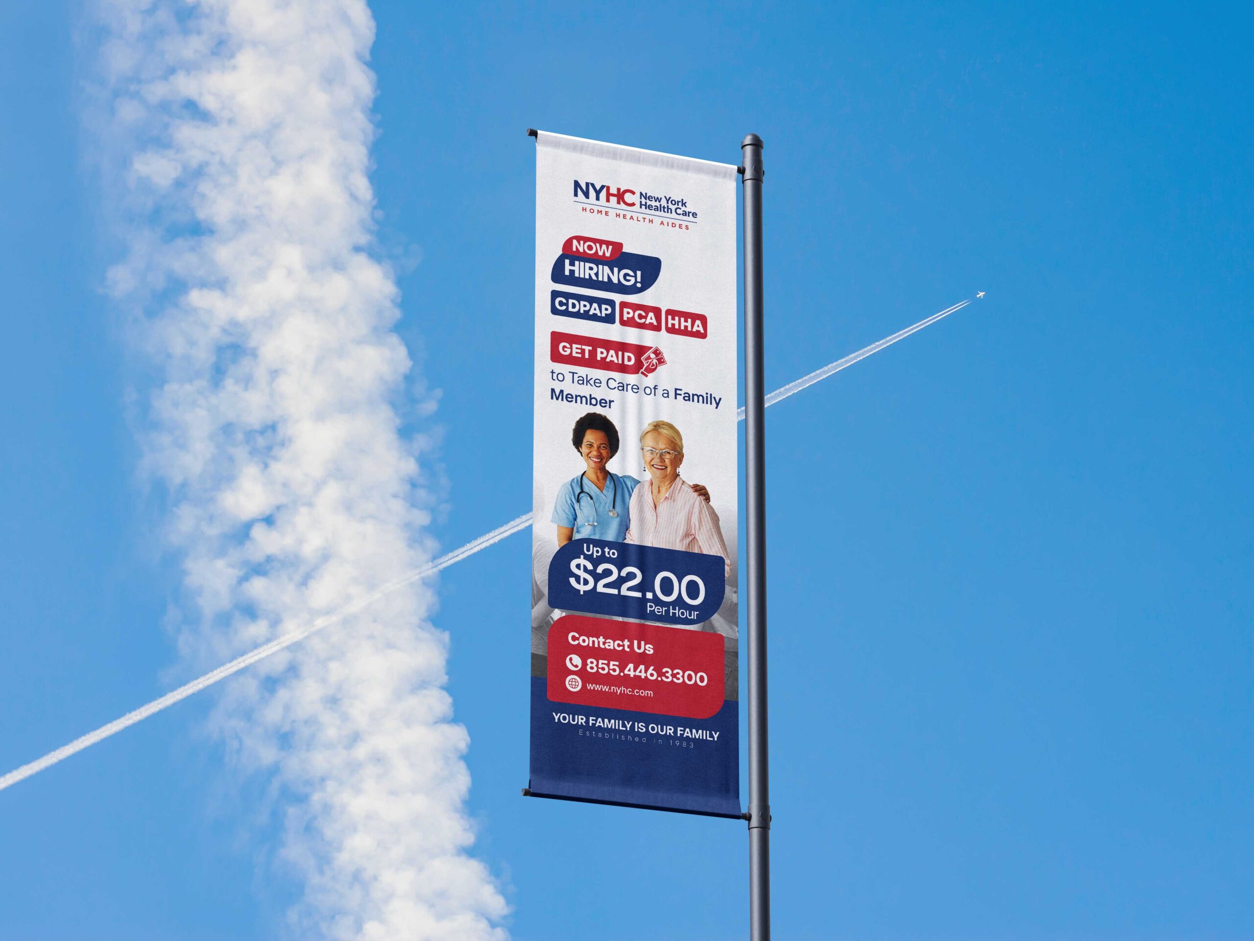 • Becoming a Beacon of Home-Based Care: Billboards and banners transformed! We created visuals that spoke to the human side of in-home healthcare, making NYHC a beacon of trust, support, and familiarity.