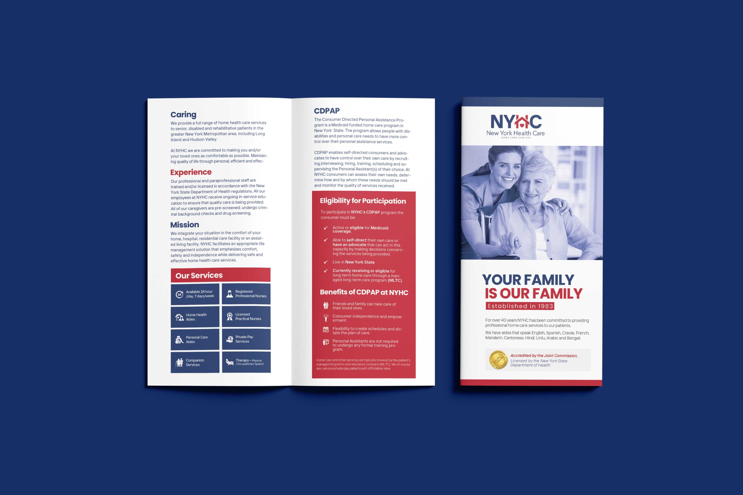 • Marketing Materials Metamorphosis: Brochures, website, social media – we wove NYHC’s story of in-home care across every touchpoint. Imagine patient testimonials and warm imagery in brochures, a user-friendly website that streamlined communication for both patients and families, and social media that fostered connections with the community, highlighting the benefits of in-home care.